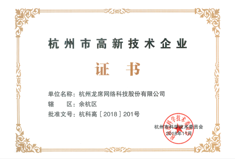 公司先后被評為杭州市雛鷹企業(yè)、軟件企業(yè)、浙江省科技型中小企業(yè)、國家科技型中小企業(yè)、杭州市高新技術企業(yè)、國家高新技術企業(yè)、